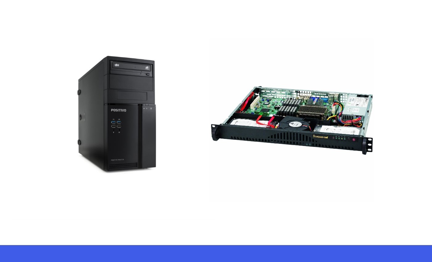 Servidor conta com Windows Server e Windows 10 pro inclusos e o produto conta com garantia Positivo de até 36 meses